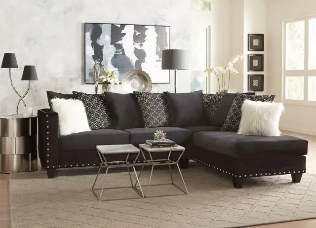 Enhance your living space with the 2pc Sectional by DFM. This sectional sofa is designed for both functionality and aesthetic appeal, featuring plush seating and stylish pillows, as shown in the images. The sectional’s modern design makes it a great addition to any contemporary living room setting.
